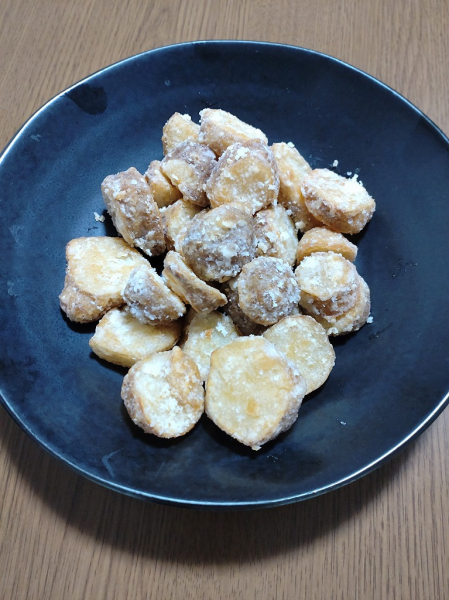 食べ方は煮たり、炒めたり、いろいろな調理方法があるらしいのですが、私は家内に唐揚げにしてもらいました。